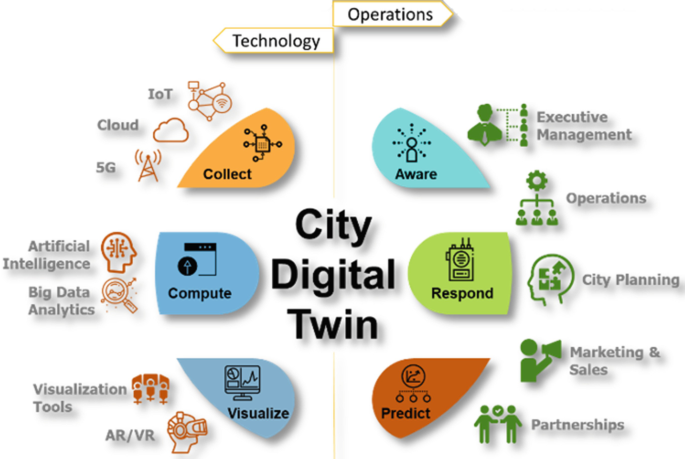 3. Digital Twin & Urban Planning Data LayerAnonymized sensor data (occupancy, energy, micro-climate, structural health from self-healing materials) streams to city digital twins. AI predicts neighborhood needs in real time — traffic patterns, waste optimization, flood risk.